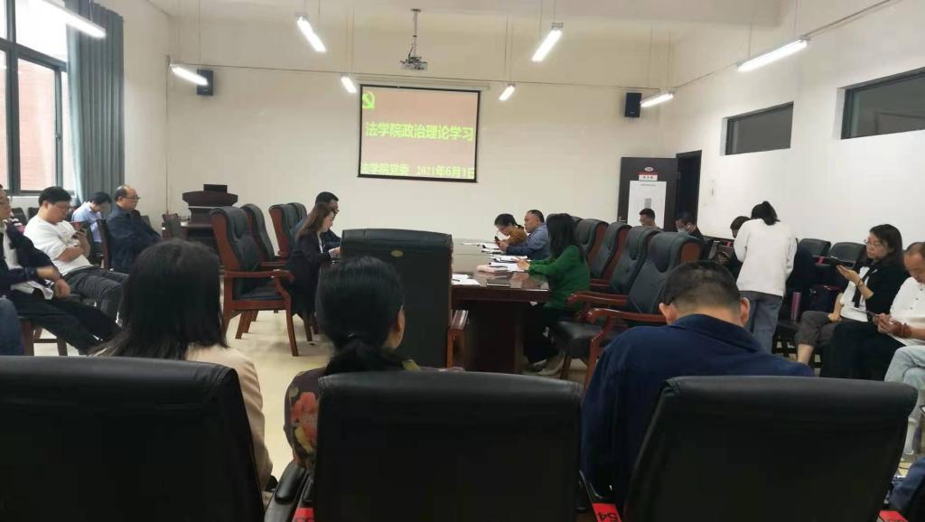 (图丨邓丽娟 文丨金方雨)2021年6月1日下午,法学院党委在文德楼A8-310会议室组织召开“深刻铭记中国共产党百年奋斗的光辉历程(二)(社会主义革命和建设时期)”政治理论学习集体研讨会议。院领导及全院教职工出席会议,院党委书记詹伟主持会议。