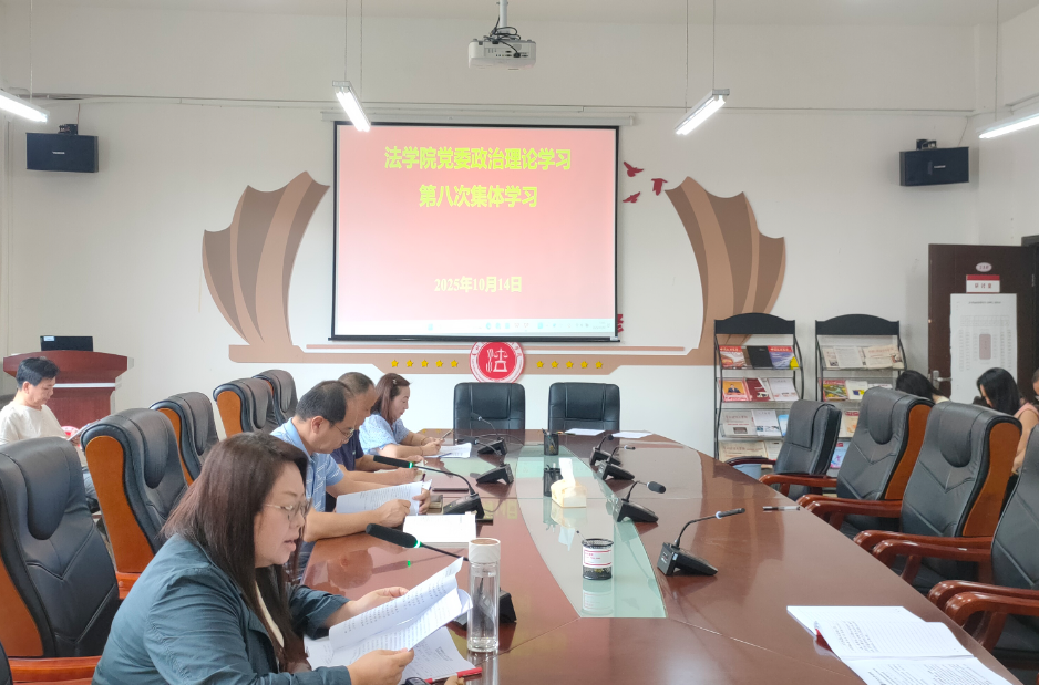 (法学院 潘吉脉 报道、摄影 )10月14日下午,法学院党委第八次教职工政治理论集体学习在西区文德楼310会议室召开。会议围绕“持续深入学习贯彻hth(中国)总书记在贵州考察时的重要讲话精神,以总体国家安全观为统领,牢牢掌握新时代高校意识形态和国防安全斗争主动权,以高水平安全护航学校高质量发展”开展集中学习研讨。院党委书记邵新顺主持会议并讲话,院领导班子成员出席,全院教职工参加。