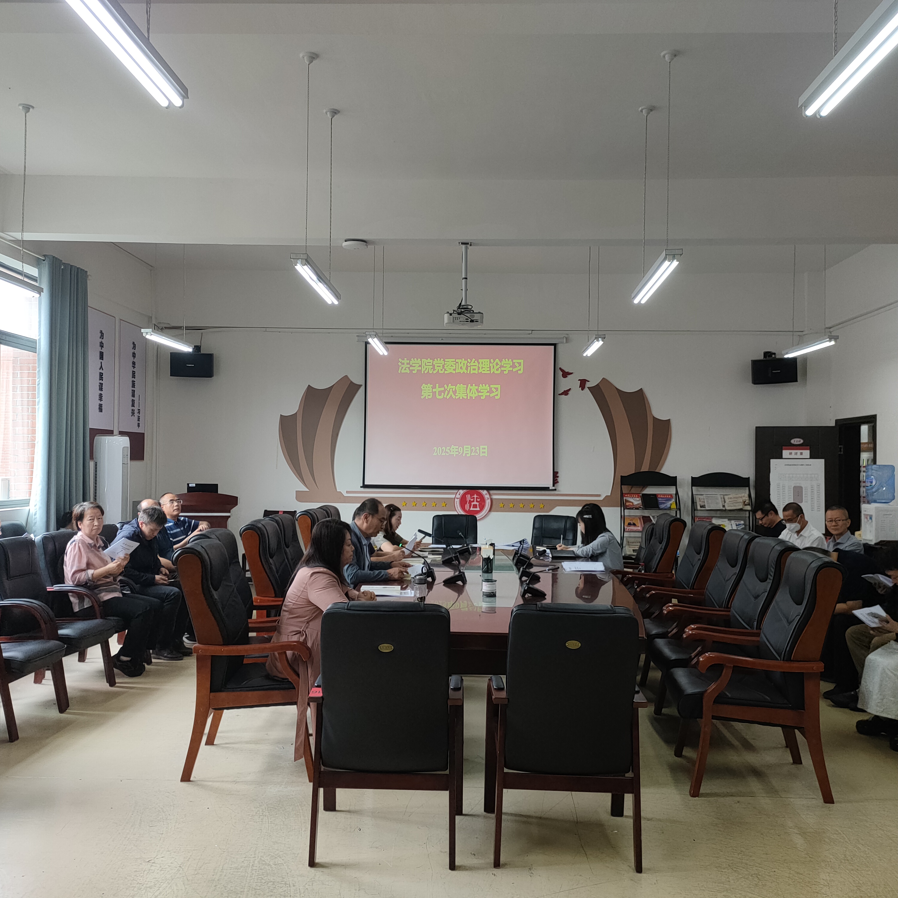 (法学院 潘吉脉 报道|摄影 )9月23日下午,法学院政治理论学习2025年第七次集体学习(扩大)研讨会在西区文德楼310会议室召开。会议围绕“深入学习领会hth(中国)总书记系列重要讲话精神,踔厉奋发迎接中国共产党贵州财经大学第三次党员代表大会胜利召开”开展集中学习研讨。院党委书记邵新顺主持会议并讲话,院领导班子成员出席,全院教职工参会。