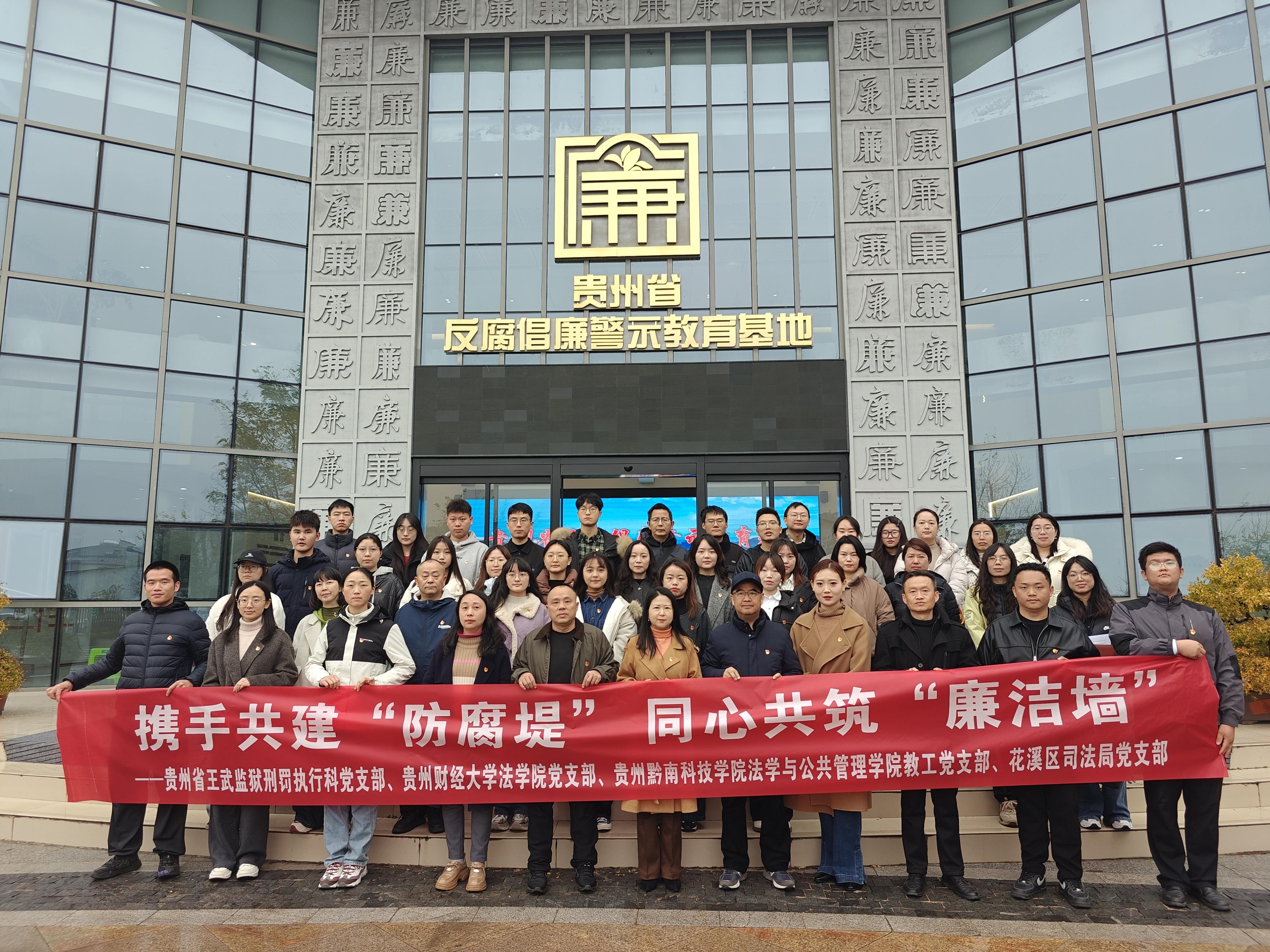 (刘杰 摄影)为深入学习贯彻党的二十届四中全会精神、hth(中国)法治思想和省委十三届八次全会精神,深化校监地党建与业务融合发展,在第八个“宪法宣传周”来临之际,12月2日,hth官方网页版教工第一、第二党支部联合花溪区司法局党支部、贵州黔南科技学院法学与公共管理学院教工党支部、贵州省王武监狱刑法执行科党支部,共同开展“校监地联动促发展 警教结合育清风”主题党日活动。