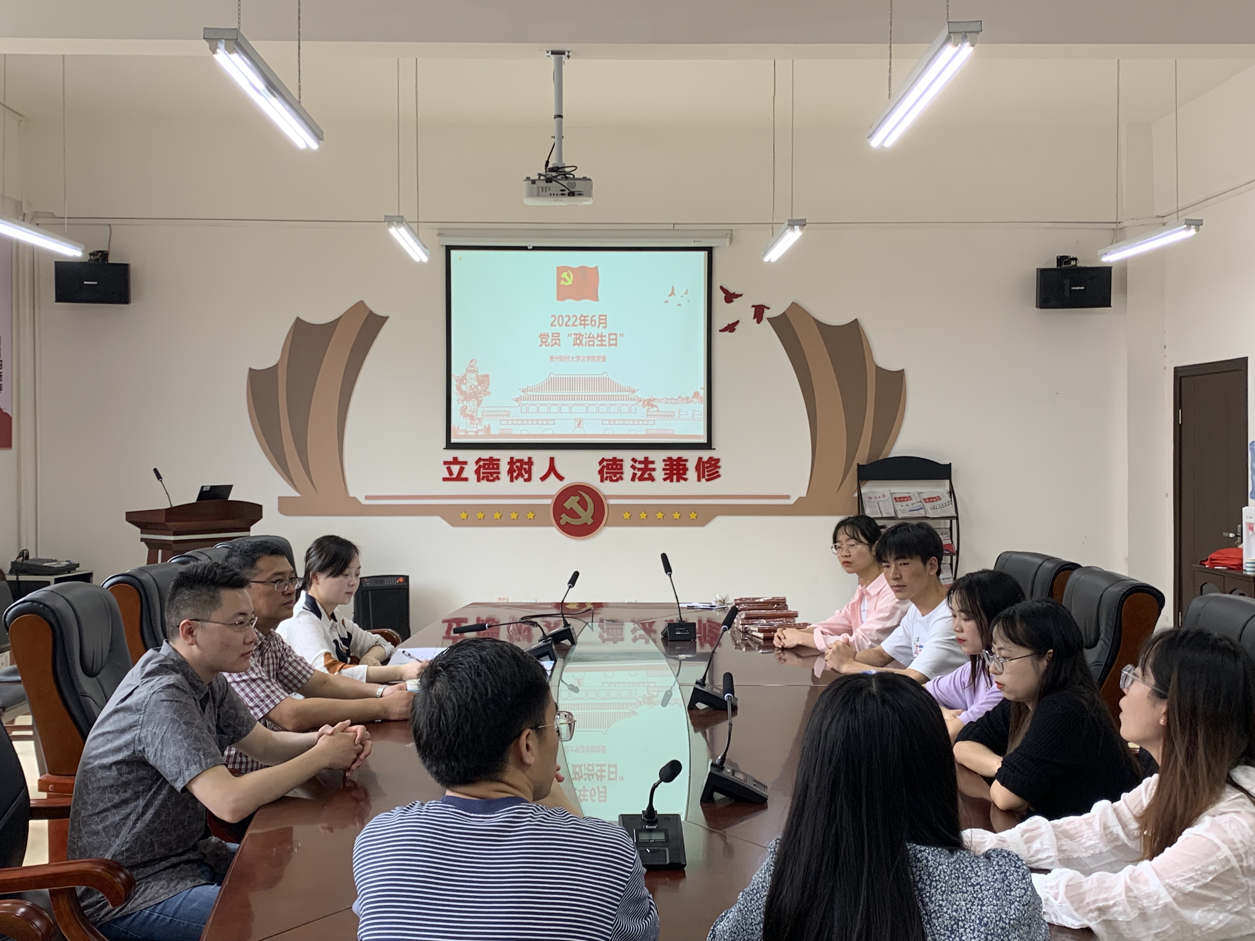 (法学院 图文/报道 史剑侠)2022年6月17日下午,法学院在文德楼(A8)310会议室开展党员过“政治生日”活动,为6月入党的党员集体过“政治生日”,法学院党委书记詹伟参会,活动由法学院副科级专职组织员莫丹洵主持,学生支部代表共8人参加本次活动。
