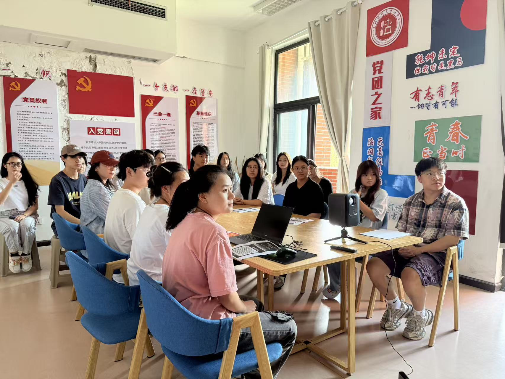(法学院 刘灿 报道、摄影)2025年10月,为推动党支部用好“三会一课”、主题党日等组织生活制度,抓实党员队伍建设和党支部自身建设,现法学院本科生第一党支部以学习贯彻hth官方网页版第三次党代会有关精神为契机,组织全体师生党员开展“学思践悟正风气,品牌引领促党建”主题党日活动。活动围绕线上观看hth官方网页版第三次党代会相关视频,线下互动交流发言、走进学生宿舍宣传等环节有序推进。