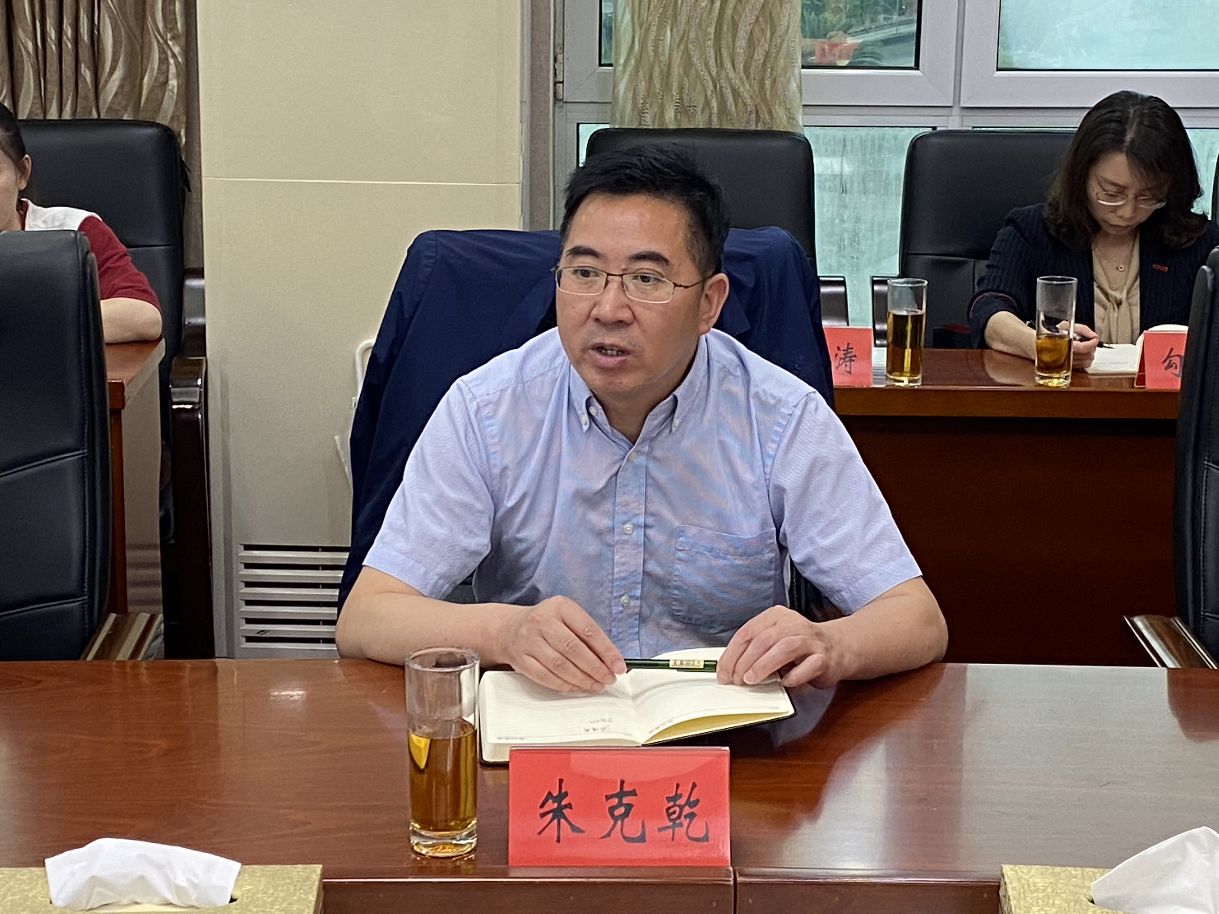 在会上,朱克乾首先对湄潭县委办公室的接待表示感谢,他说贵州财经大学与湄潭县有很多的合作关系,颇有渊源,此次调研,双方一定会从中获益匪浅,创造双赢局面。在观看了湄潭县县情的视频之后,改革办、农业农村局及自然资源局相关负责人先后就湄潭县宅基地制度沿革、“全、收、分、退、转”的有效经验做法、宅基地改革中存在的疑惑、实操中的个案处理等进行了分享。针对湄潭县在宅基地改革中存在的疑惑,调研团队一行进行了答疑解惑。