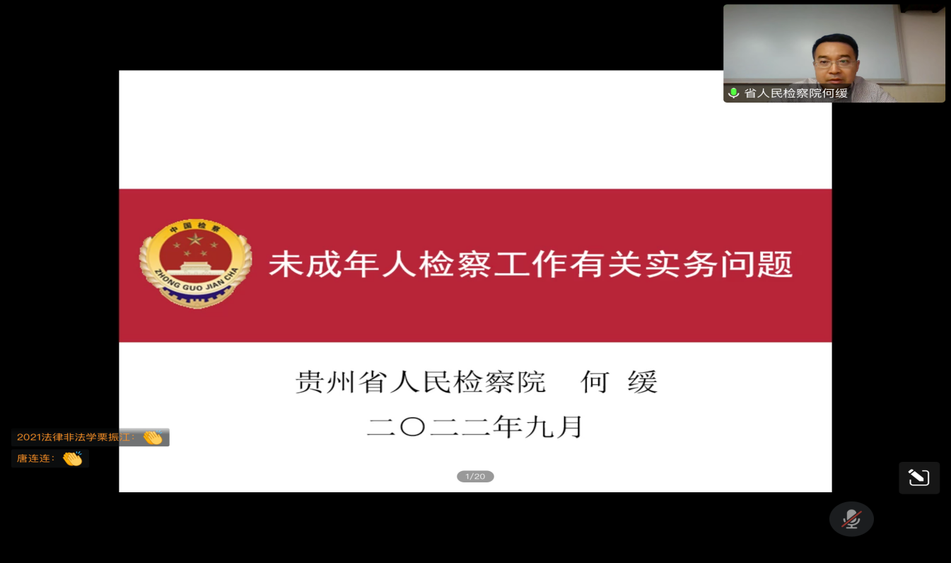 (法学院 图文/报道 钟佳昕)9月30日下午,由法学院承办的“未成年人检察工作有关实务问题”讲座通过腾讯会议举行。本次讲座由贵州省人民检察院第一检察部副主任、四级高级检察官何缓主讲。hth官方网页版党委委员、副教授宋昭澜主持会议。法学院本科生、研究生及会计、工商管理等专业学生300余人次线上聆听。