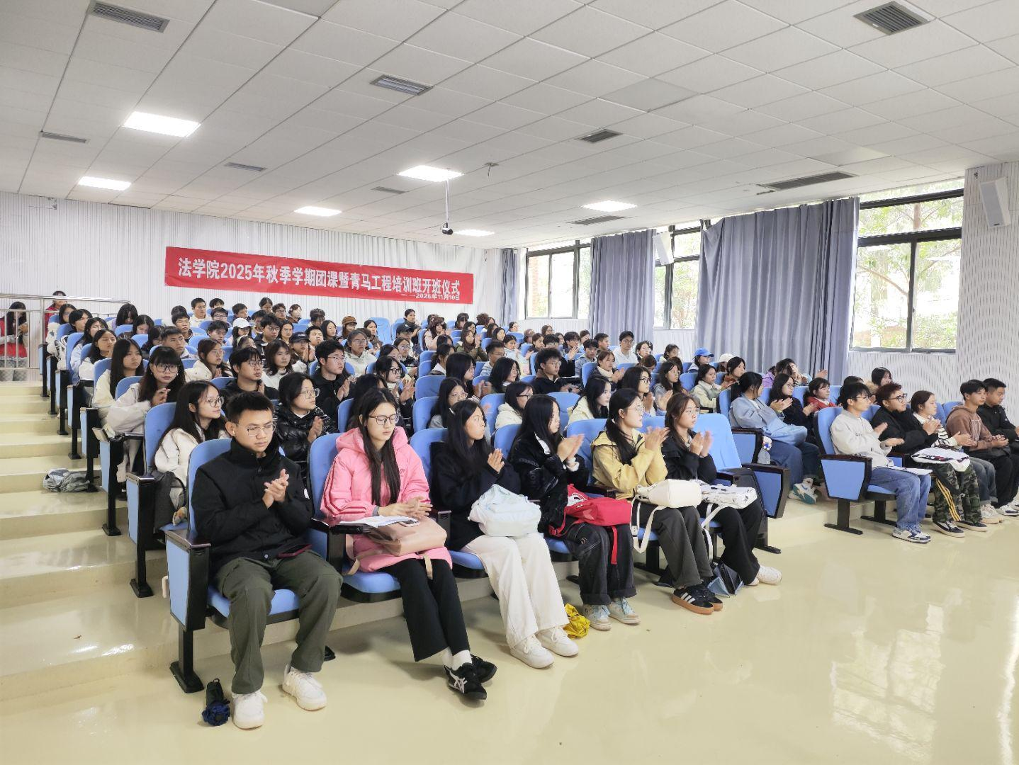 在开班仪式上,法学院党委副书记彭华授开班第一课。她寄语青年团员:“作为法学专业学子,要以团课为契机筑牢理想信念,将法治信仰融入青春底色,在服务国家法治建设中彰显青年担当。” 现场掌声雷动,团员们的青春热情被迅速点燃。