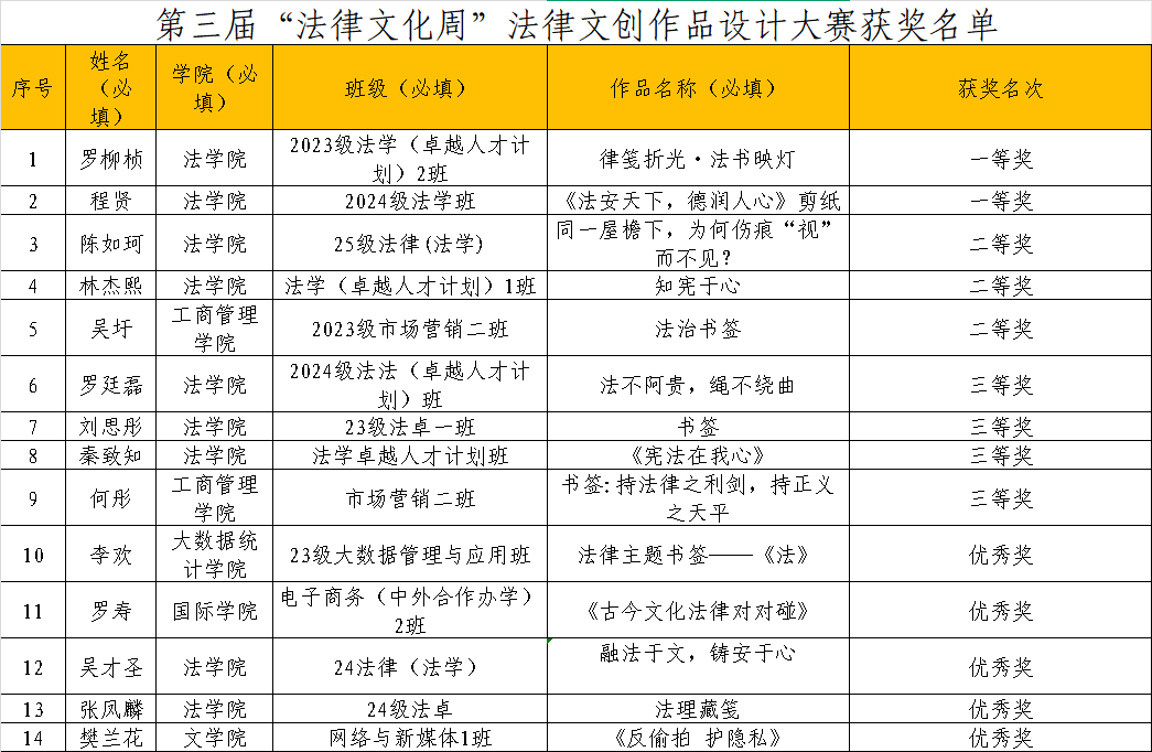 为让更多人感受法律文创的独特魅力,本次大赛获奖作品线下展览将于文德楼法学院一楼正式开展!法治之路,创意同行。第三届法律文化周法律文创作品设计大赛虽已落幕,但法律文化的传播与创新永不停歇。让我们以这些优秀获奖作品为起点,让法治精神通过更多元、更鲜活的形式走进千家万户,让每一个人都成为法治文化的传播者、践行者!