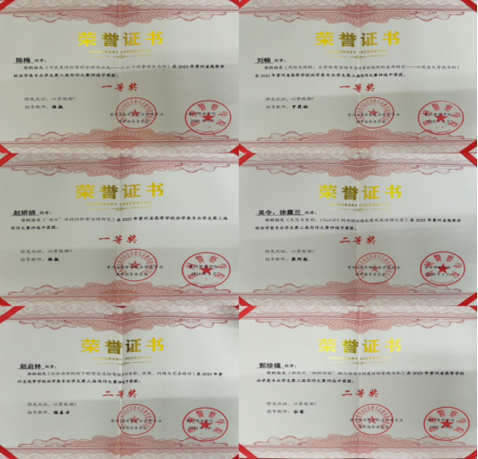 法学院以人才培养为中心、校企合作为基础、充分发挥“理论与实务融合型”“法商融合型”师资队伍优势,加大产教融合力度。近年来,学生获得校级奖励100余项,省级奖励20余项,国家级奖励10余项。2024年在贵州省高等学校法学类专业学生第四届模拟法庭大赛中,荣获团体二等奖、最佳辩护词优秀奖、最佳起诉书优秀奖、优秀指导老师奖的佳绩;在全国法律职赛中获研究生组二等奖;在全省“学宪法讲宪法”比赛中获高校组季军;在省青少年提案赛中,5生作品获三等奖,写作赛多人分获一、二、三等奖及优秀奖;在“建行杯”中获省级银奖等。法学院有本科生760余人,研究生430余人。近年来就业率始终保持稳步上升态势,初次就业率均在91%以上,高出全省平均初次就业率3个百分点。应届毕业生考取硕士研究生的比例一直保持在20%左右,在全校居于前列。用人单位对我院毕业生能力素质评价高,满意度达95%以上。2021年在“校友会2023年贵州省大学法学门类专业排名”中hth官方网页版法学专业在贵州省位列第2、在全国排名第109位。学院培育的一批又一批优秀学子,在公检法、律所等领域辛勤耕耘,建功立业,比如有01级法学院校友,现是贵州度朗律师事务所合伙人;有02级法学院校友,现任贵州瀛黔律师事务所主任。
