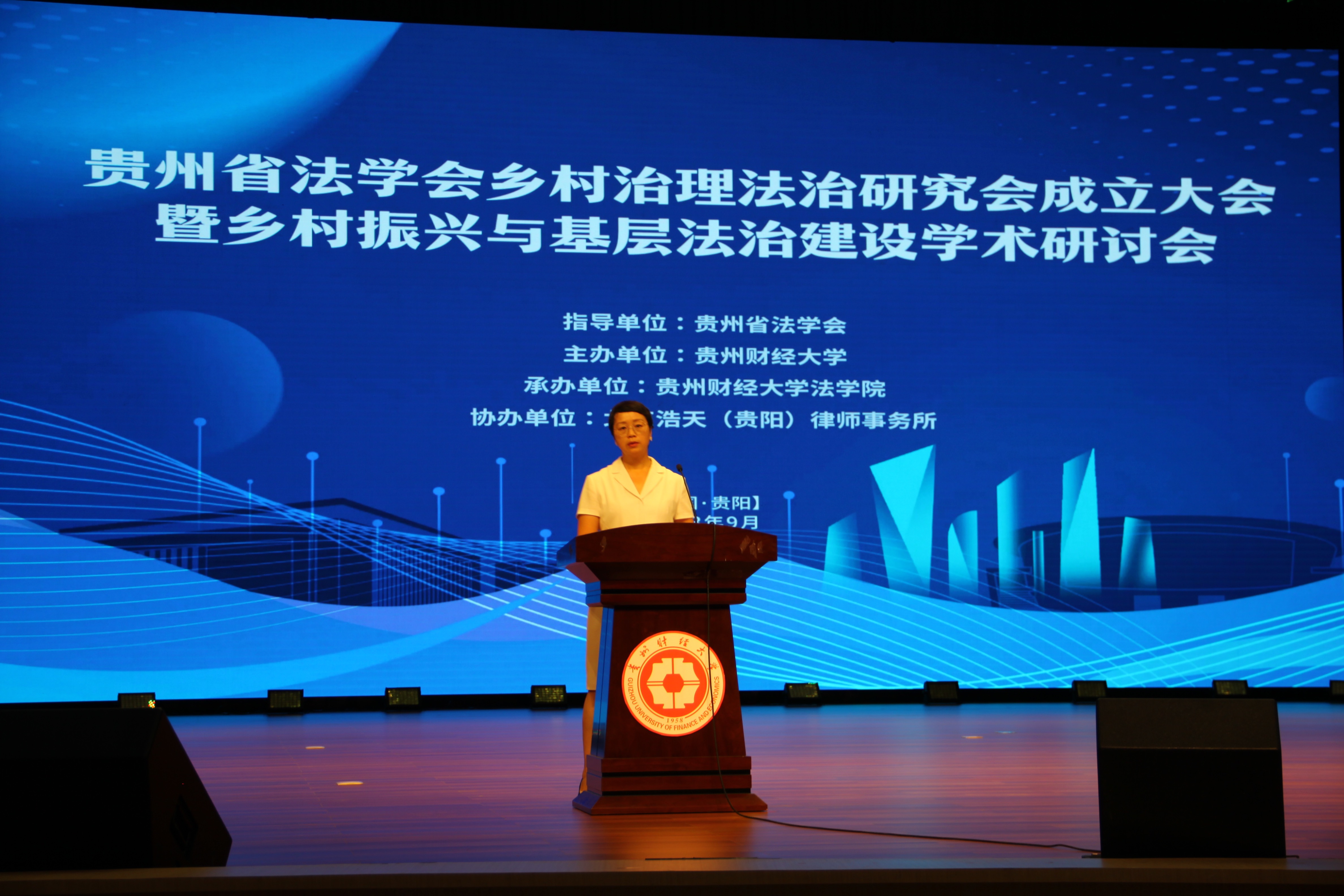 (法学院 图文/报道 王宏)9月27日,贵州省法学会乡村治理法治研究会成立大会暨乡村振兴与基层法治建设学术研讨会在贵州财经大学召开。贵州财经大学党委委员、副校长李汉文致欢迎辞,贵州省法学会专职副会长兼秘书长王占霞、贵州省社会科学院二级研究员吴大华出席会议并致辞,hth官方网页版院长陈玉梅主持会议。相关领导、嘉宾、研究会会员、学术论文作者等200余人参加会议。